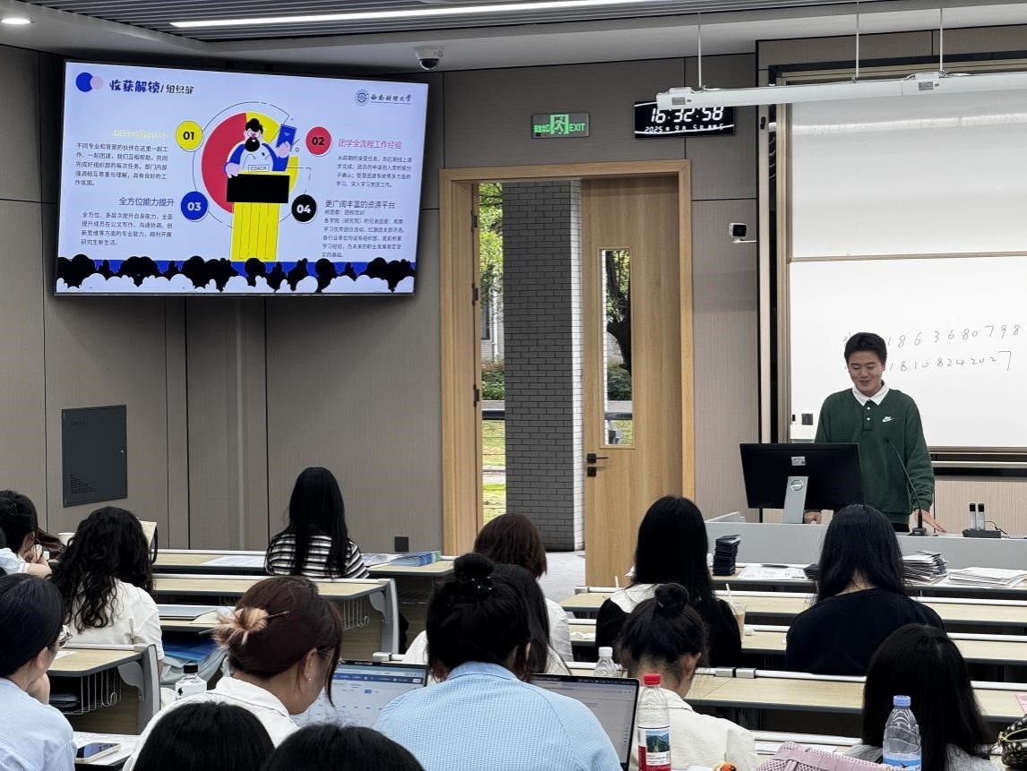 接着,院研究生会主席郭炫辰进行了研究生会招新宣讲,详细介绍了天美传媒
