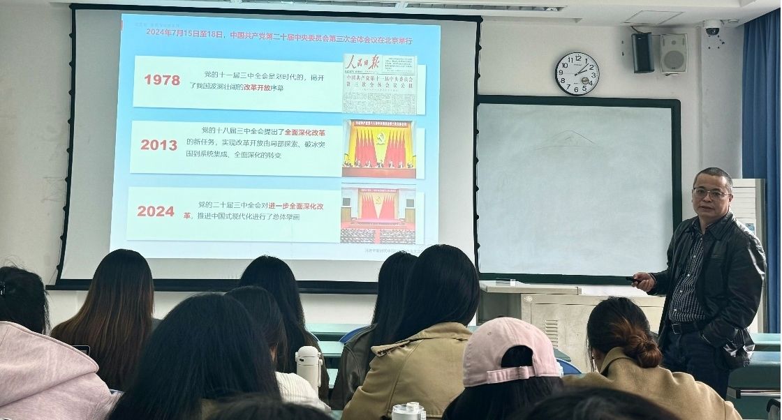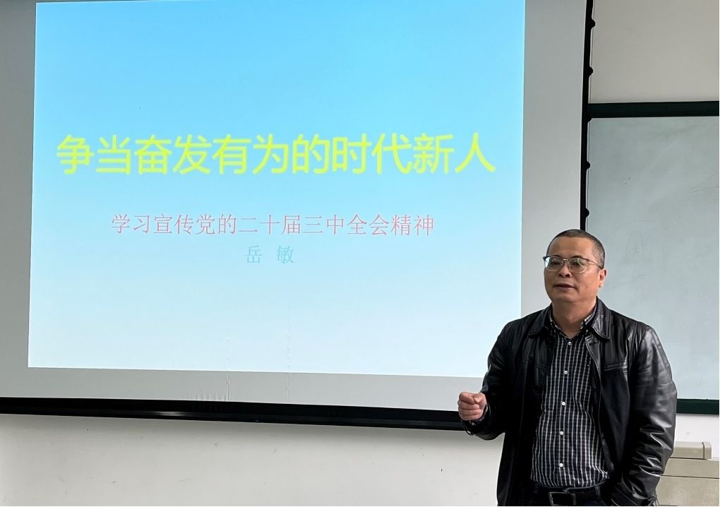 岳敏书记于明德楼203教室给光华校区的学生讲授了题为“深入学习贯彻党的二十届三中全会精神 争当奋发有为的时代新人”的专题思想政治理论(专题)课,本次课程旨在学习宣传党的二十届三中全会精神,引导天美传媒