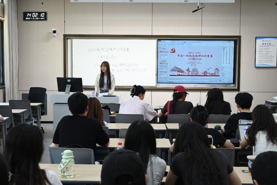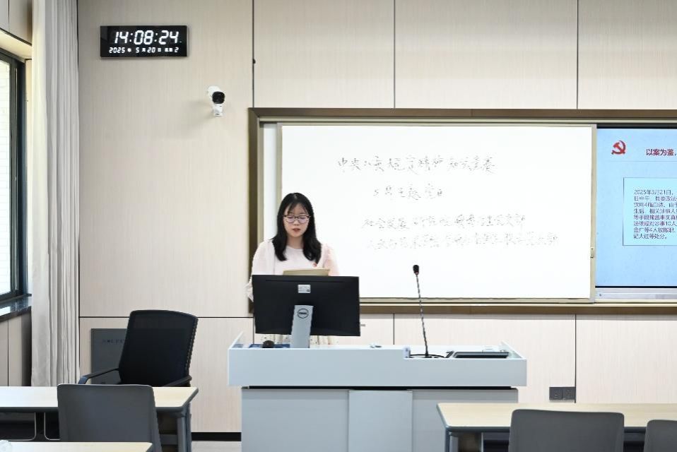 硕博党支部宣传委员)对本次知识竞赛的背景与前期准备工作进行了简要介绍。她指出,在深入贯彻中央八项规定精神的学习教育期间,支部注重加强党员的自主学习与系统学习。为提升学习实效,两个支部提前联合制定学习方案,发放学习资料汇编,党员们展现了出高度的政治自觉与学习热情。