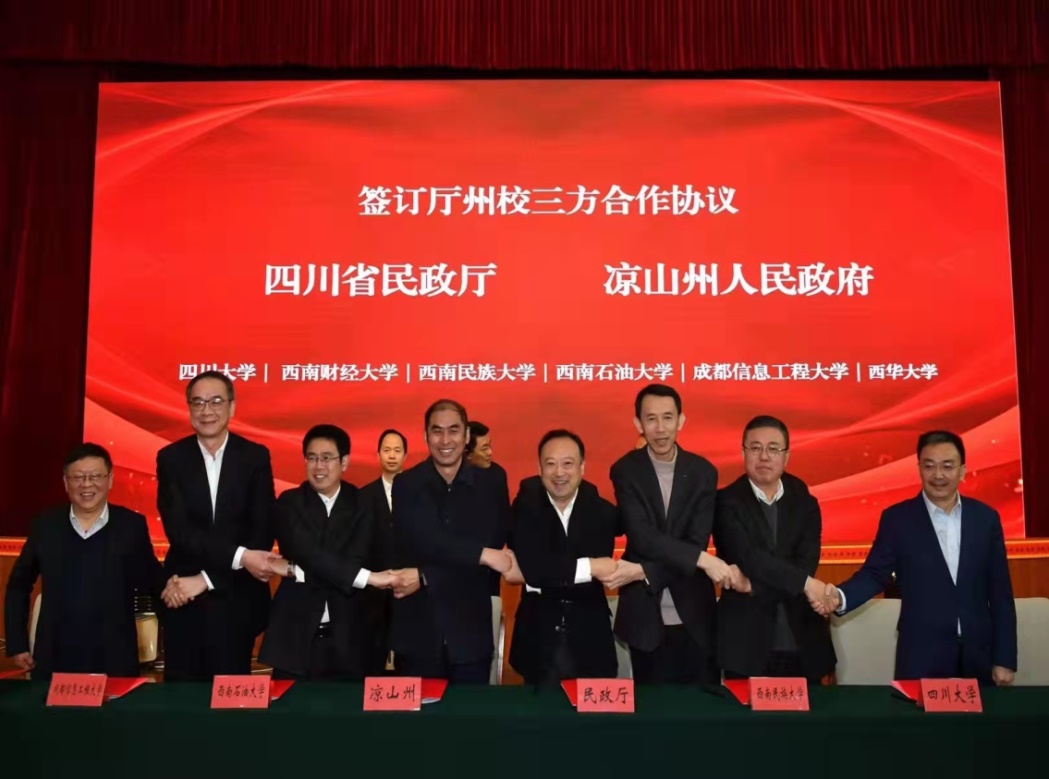 协同社会工作机构申请了“彝路相伴、生命花开”——凉山州美姑县易地扶贫集中安置点社区儿童关爱服务项目,并获得中央财政支持社会组织参与社会服务立项支持,获得60余万的服务经费。2020年12月15日,该工作的签约仪式在四川省凉山州举行,时任四川省委常委、组织部部长王正谱,时任四川省政协副主席、凉山州委书记林书成,时任四川省教育厅党组书记、厅长李江,四川省民政厅党组书记、厅长益西达瓦等省州领导出席。学校党委副书记马骁代表学校签字,并前往美姑县北辰社区参加“彝路相伴,北辰星拱”项目的启动仪式。