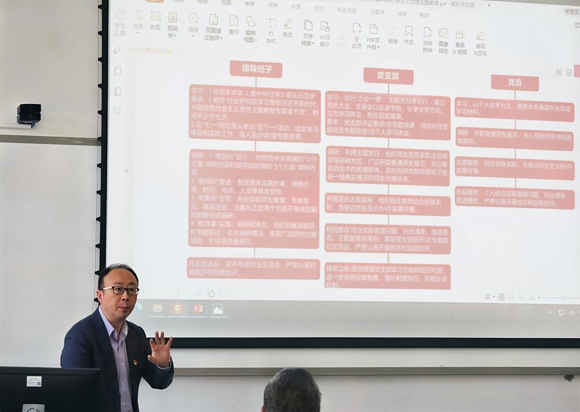 最后,杨院长分别对此次主题教育的领导干部、党支部、党员提了要求,希望全院党员师生能严格按照学校党委、研究院党委的工作要求,坚持原则、严格标准,高质量高标准推动主题教育走深走实。