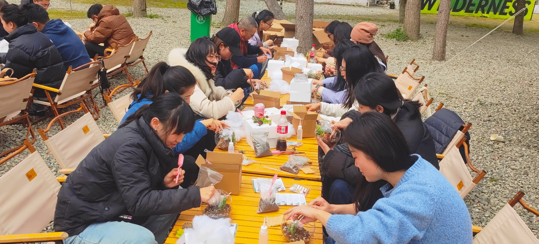 下午,大家一起体验了微景观的种植,各自展示了自己的创作才能。随后,大家围炉畅聊,交流工作、生活心得,展开了深入的思想碰撞。