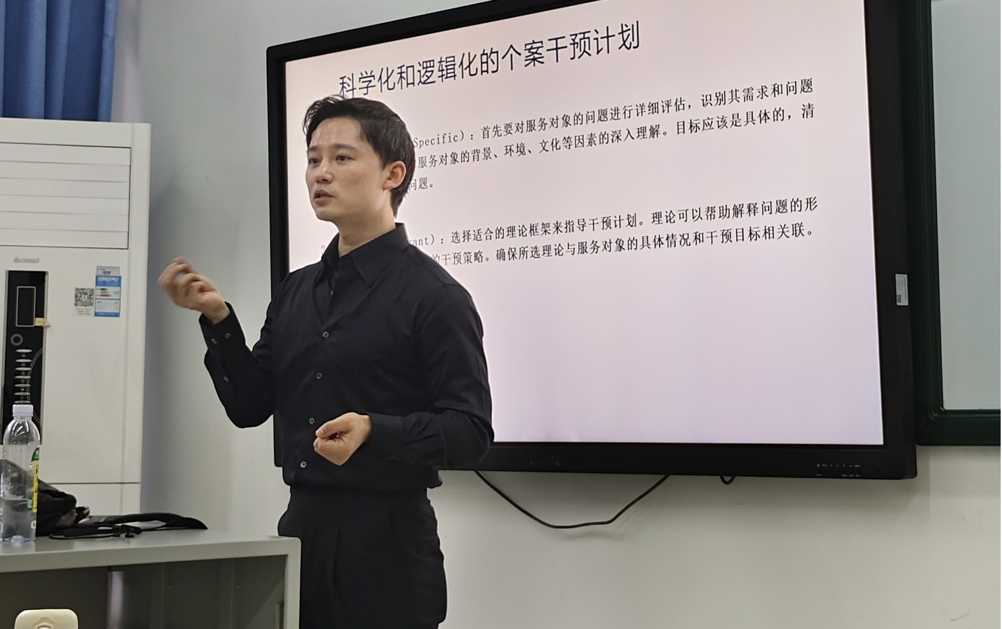 何龙韬老师认为研究性案例与论文具有很多相似之处,都需要进行深入的文献综述、明确的问题定义、清晰的目标设定以及科学的干预计划设计,随后,何龙韬老师详细阐述了研究型案例的撰写方法和步骤。首先,他强调了个案基本信息在案例研究中的基础性作用,介绍了背景信息的收集和整理方法,以及问题陈述、需求评估、目标设定、干预计划等关键环节。其次,他针对当前干预过程记录中存在的问题,指出同学们需要转变思路,注重记录和分析干预过程中的深层次信息,以提升自己的案例研究能力。最后,他分享了其在案例研究中的实践经验和心得体会。他指出,在确保研究的客观性和准确性的同时,还要关注服务对象的个体差异和文化背景,确保研究的个性化和文化敏感性。