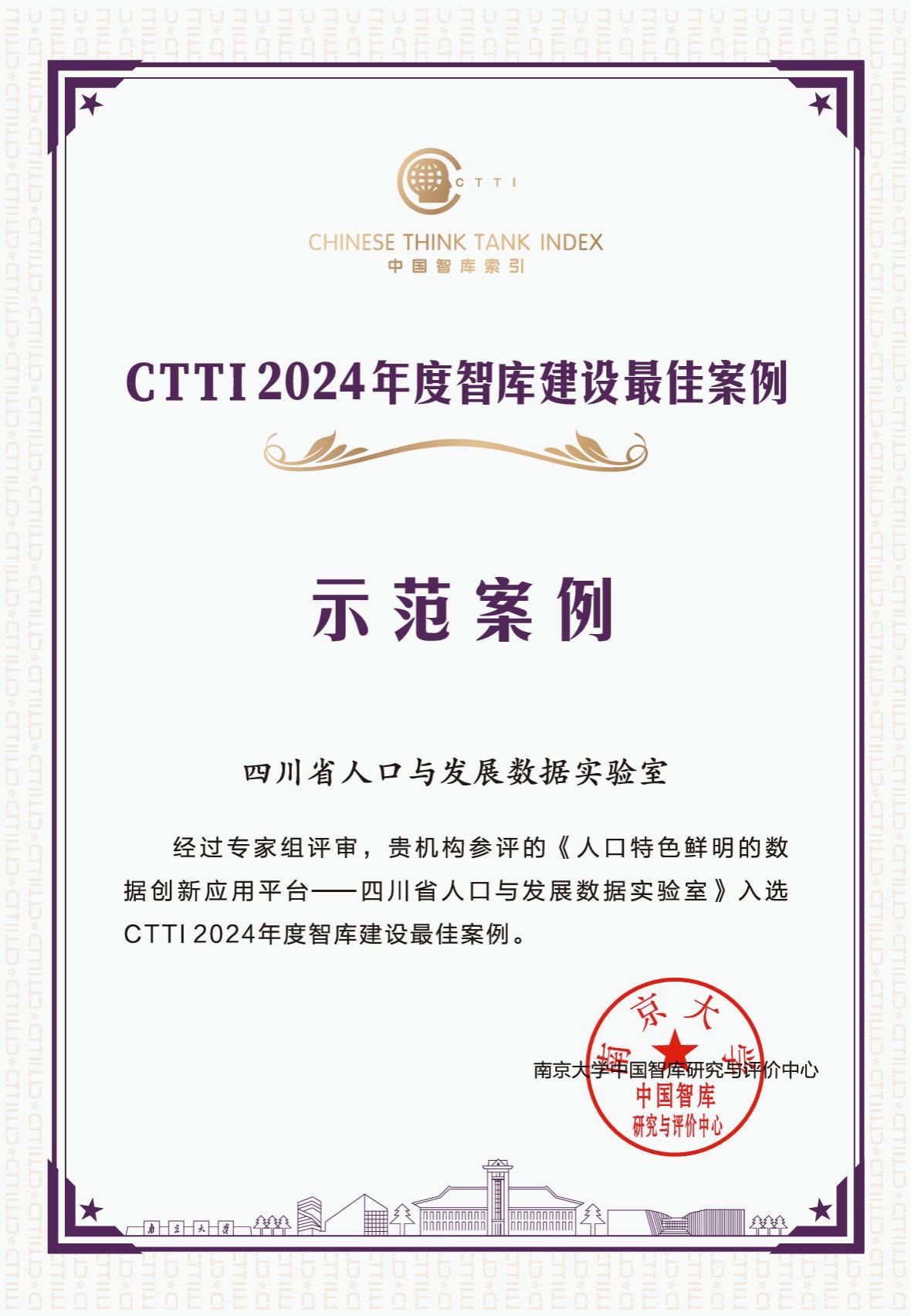 的四川省人口与发展数据实验室入选增补智库名单,并被评选为智库建设最佳示范案例。