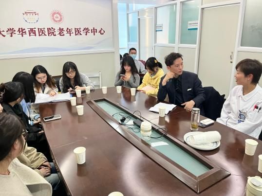 师生前往四川大学华西医院老年医学中心实践教学。护士长谢灵灵讲解了安宁疗护的发展、华西医院的创新实践及“全人关怀”理念,并与何龙韬副教授共同探讨了医院与学校志愿者合作模式。医务社工部部长蒋婷婷介绍了社工在医院各科室的职责与服务内容,并解答了学生的问题。本课程依托与四川大学华西医院的合作,通过医教协同实践平台,引导学生深入医疗场景,探索安宁疗护服务的社会价值和医务社会工作专业的实务路径。围绕校医协同,探索志愿服务与专业实务相结合的创新机制,推动多学科跨界合作与复合型人才培养。